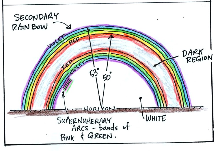 Note the reversal in the order of the colors in the secondary rainbow.